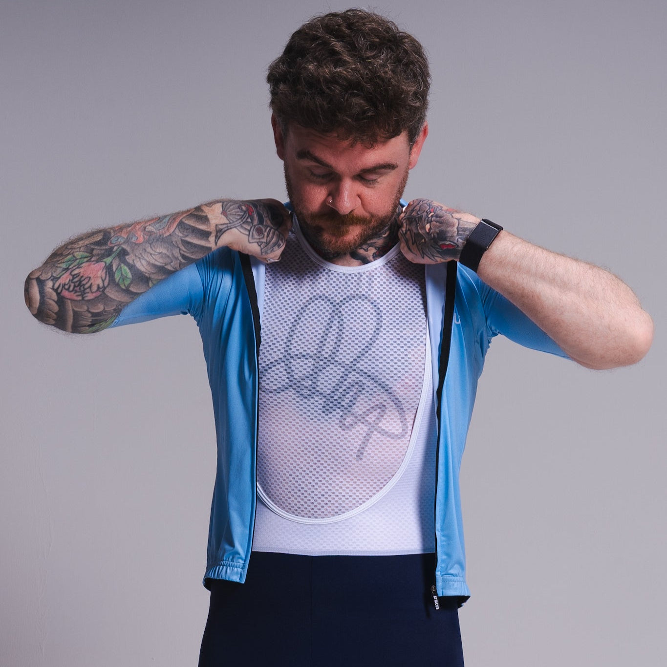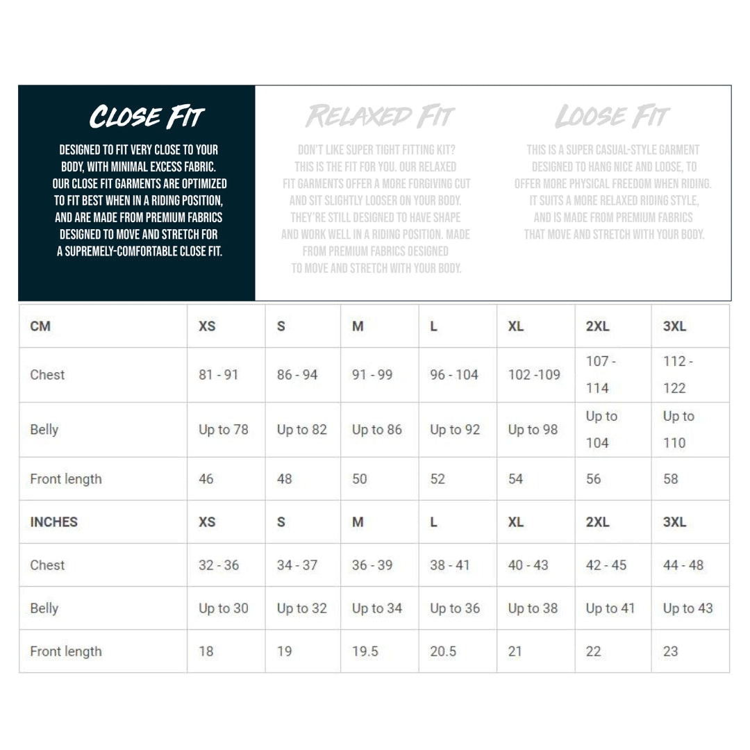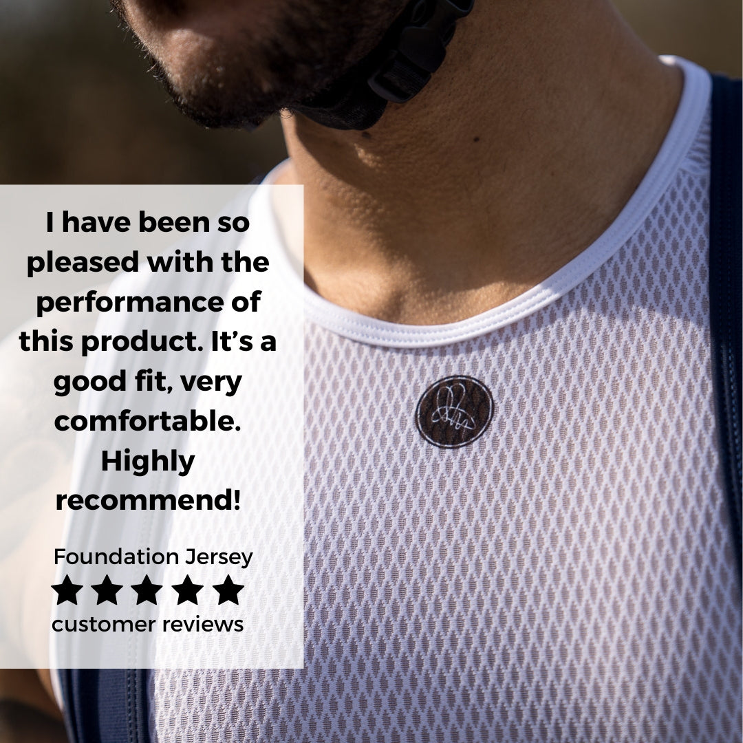 Designed to avoid visible bunching when tucked into bib shorts, while still covering where you need it to